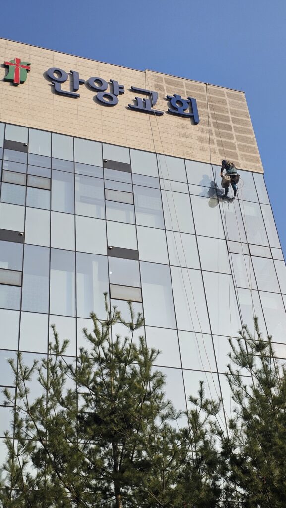 오늘은 경기도 안양시에 위치한 안양교회 외벽 청소 및 유리창 청소 작업 후기를 자세하게 소개해드리겠습니다.